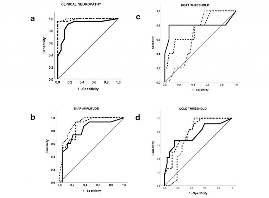 Early Neuropathy Scale (stippled line) and Total Neuropathy Score Clinical (punctate line). The state definitions for discriminating